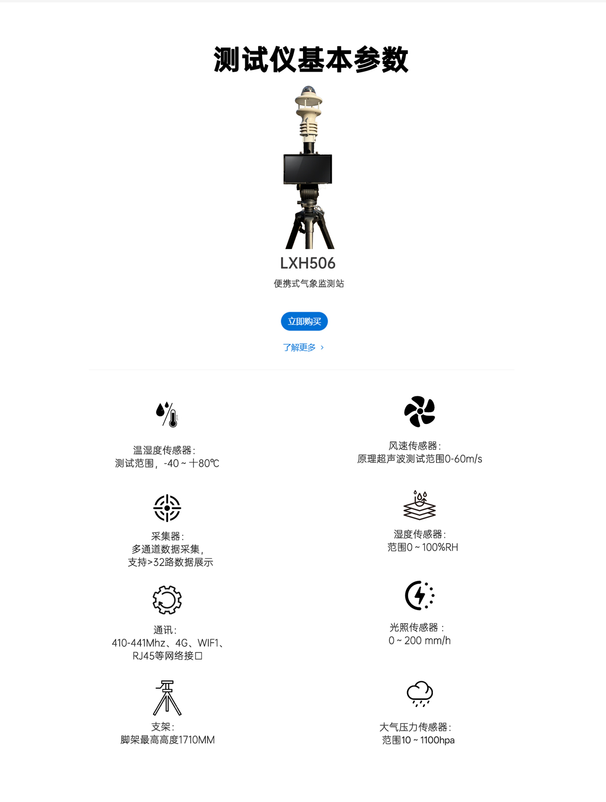 LXH506是一款便攜式氣象監測站,可隨身攜帶各個場地進行便捷的氣象采集工作,搭載超聲波微氣象LAILX-T5/LAILX-T6可實現風速、風向、大氣溫度、大氣濕度、大氣壓力、輻照度的測量。整套設備單人攜帶、操作方便,配置大容量鋰電池,適合短期戶外監測,廣泛用于應急氣象監測、車載氣象監測、氣象檢測等應用場所。