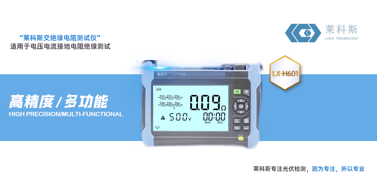 LX-H601絕緣電阻綜合測(cè)試儀應(yīng)用于光伏電站系統(tǒng)的電氣安全測(cè)試與高壓電力設(shè)備的絕緣測(cè)試,整機(jī)涵蓋電壓電流測(cè)試、連續(xù)性接地測(cè)試、極性測(cè)試、Voc、Lsc、絕緣測(cè)試、絕緣故障定位、接地測(cè)試等。
